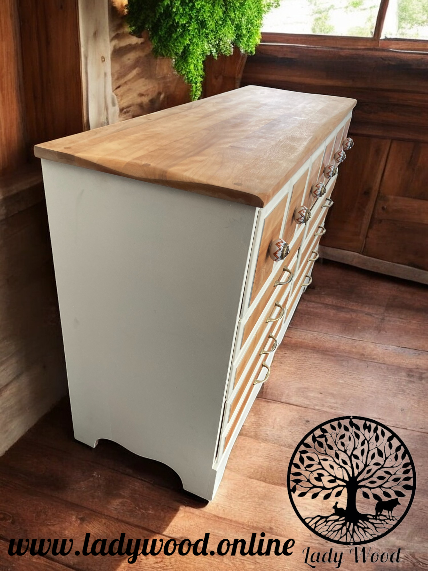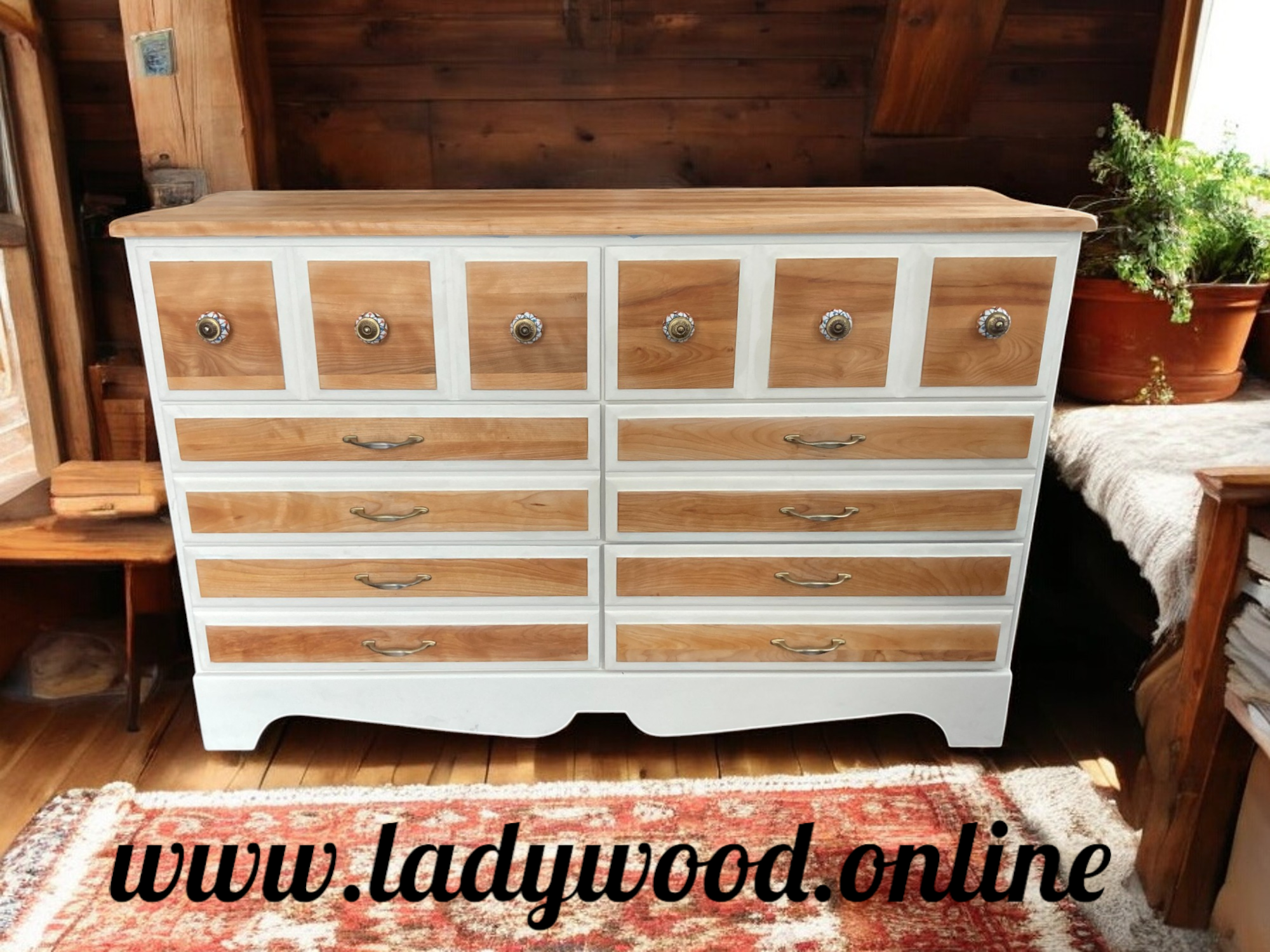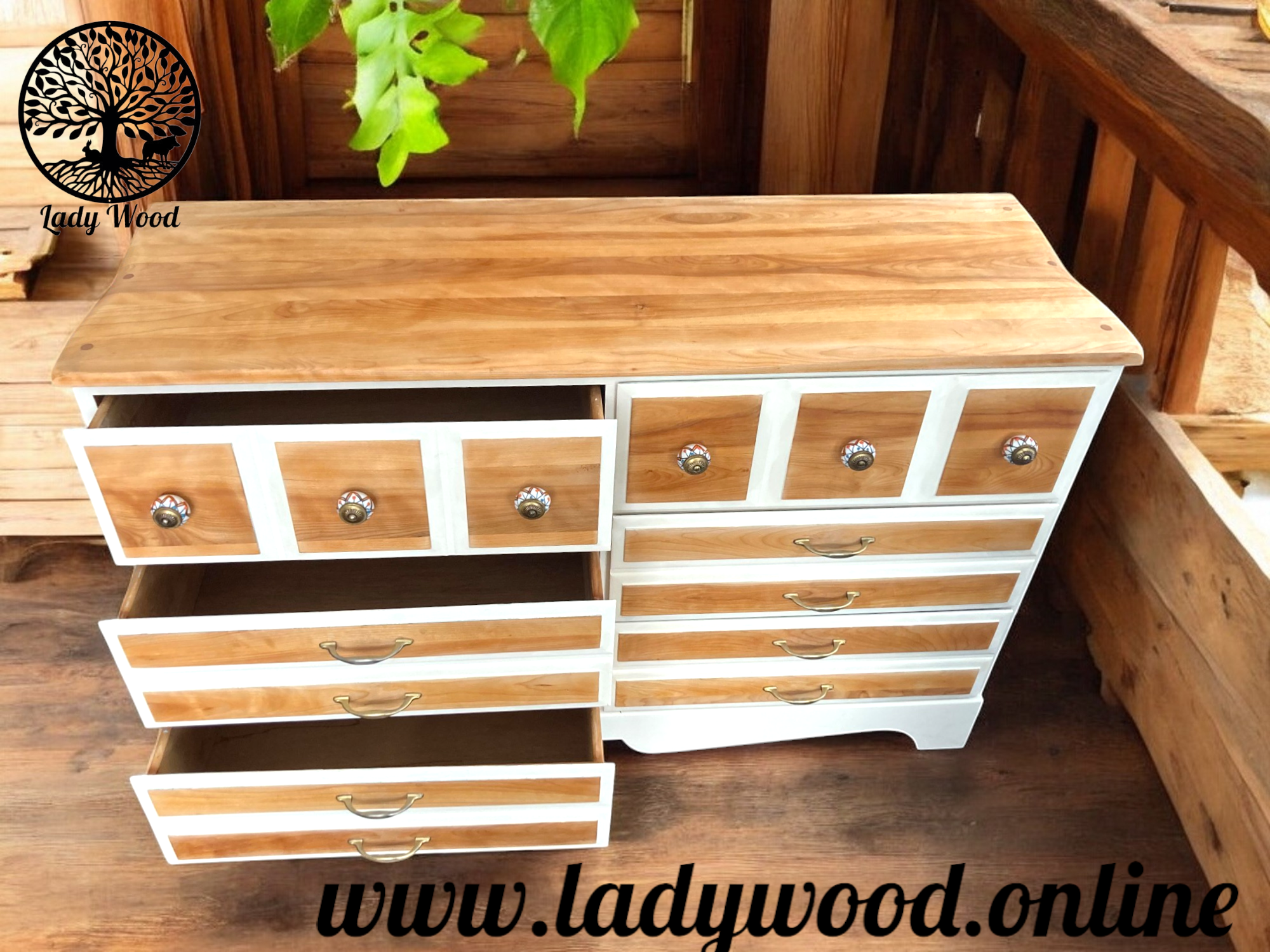 This dresser is more than just a functional piece of furniture; it is a work of art, rich in both history and character, perfect for adding a touch of vintage elegance and playful color to any contemporary home.