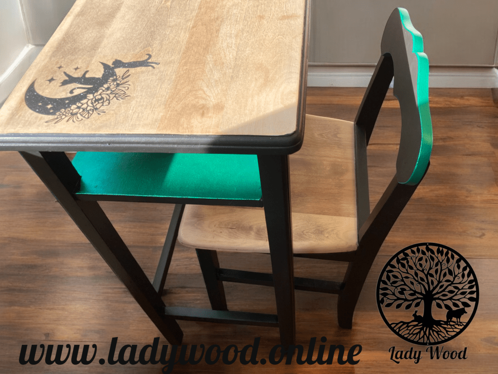 A desk where dreams and mischief collide! The Luna-CATs desk invites young imaginations to explore with its sleek black surface adorned with enchanting metallic green highlights. Sparkling pinstripes shimmer down the legs, adding a touch of magic to every creative endeavor.
